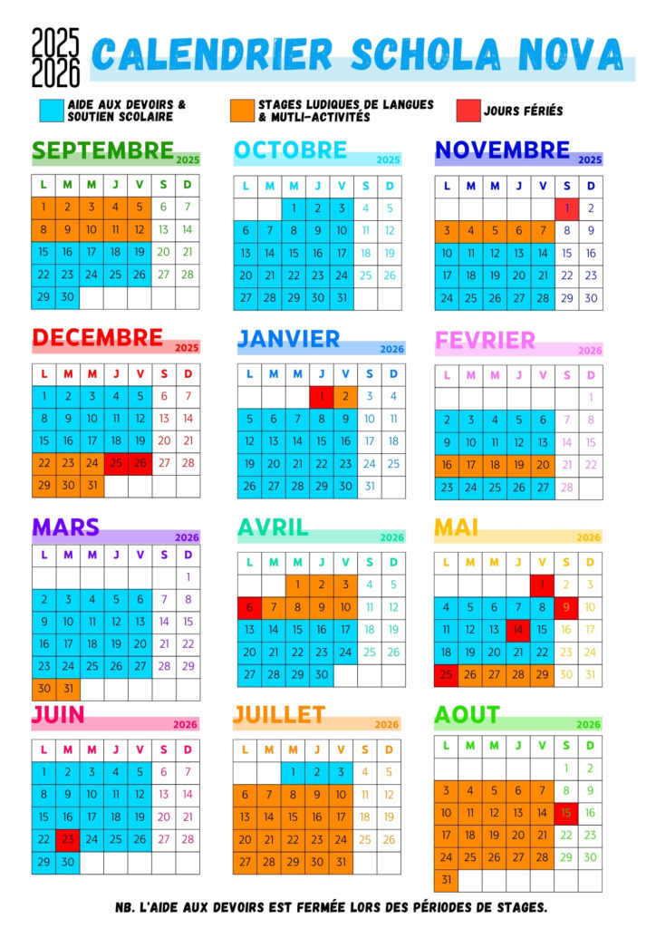 Pour l'année 2026, les stages de Pâques se dérouleront du 30 mars au 10 avril.